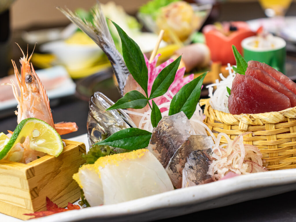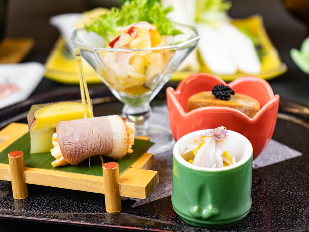 前菜やお造り、お凌ぎ・揚げ物には海に面した街の「湯河原」ならでは、魚食材を取り入れたラインナップです。